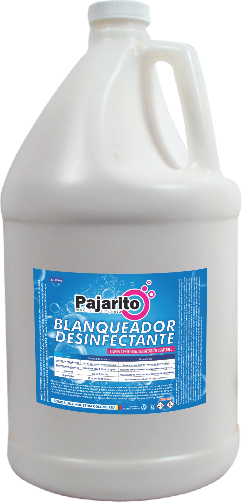 Máxima desinfección doméstica. Hipoclorito estabilizado ideal para ropa blanca, pisos y baños, garantizando un hogar libre de gérmenes.